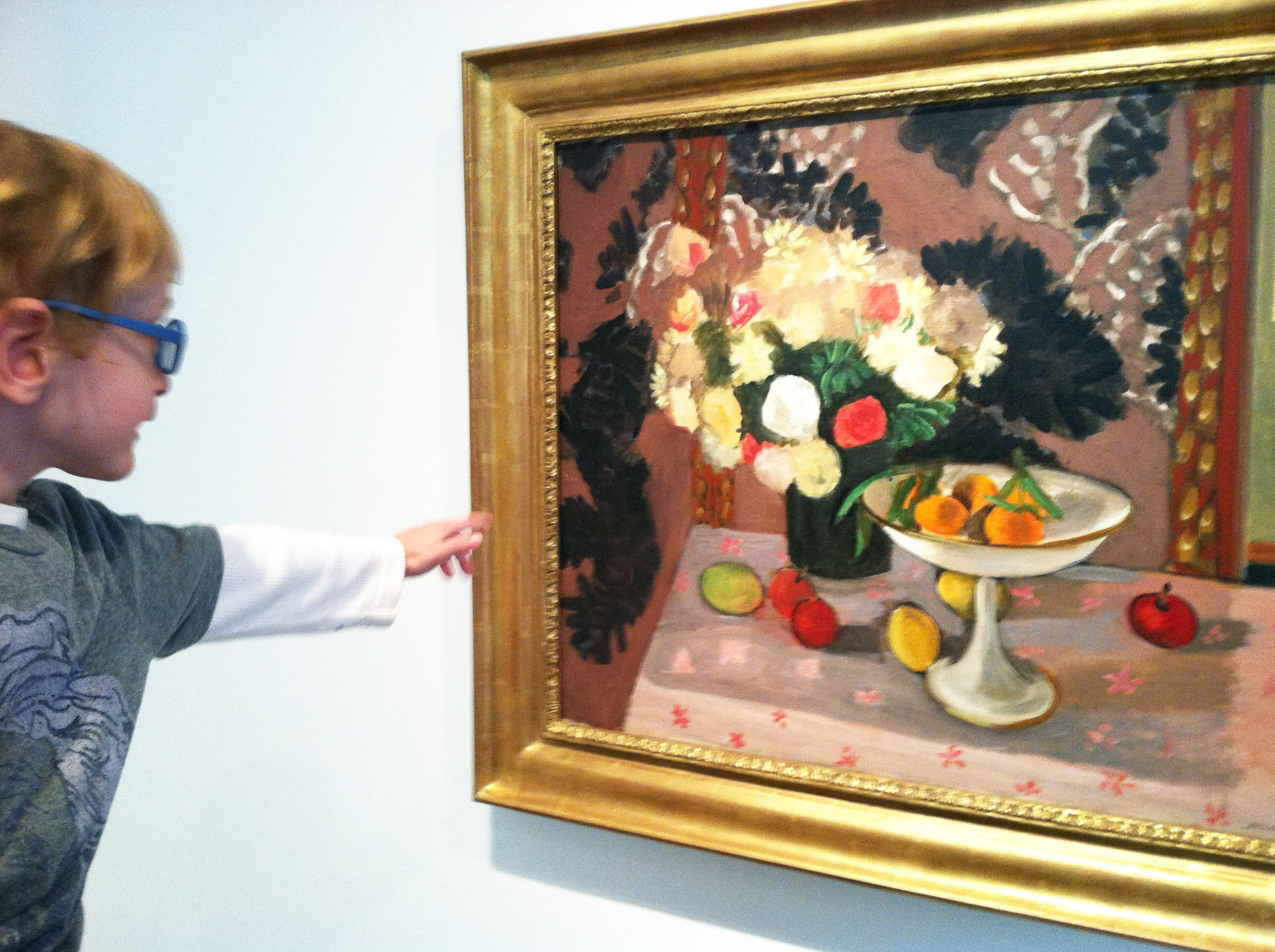 I think one of his favorite parts of the morning was taking a look at some paintings with Daddy. James was quick to name the colors he saw and even told us some of the objects in the paintings. He got smiles from the sweet people walking near us when he excitedly called out “cow” (which he says very slowly and carefully) when he looked at a painting with a cute little dog. That’s ok buddy, it was a little abstract.