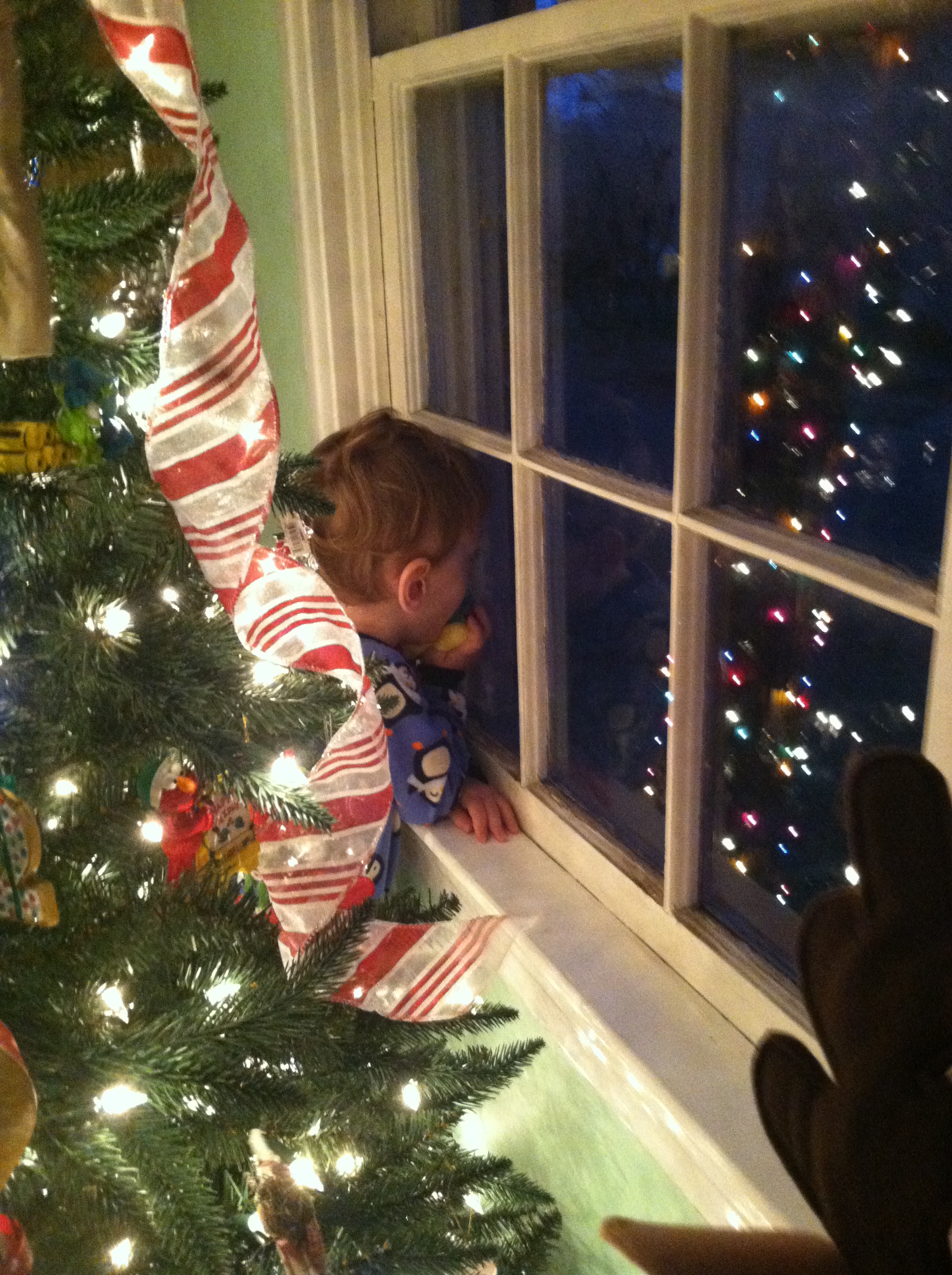 Whenever we couldn’t find James, he was usually behind the tree looking at the reflection of the Christmas lights.