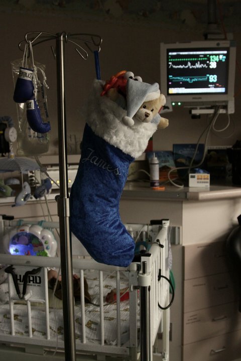 We made our very own Elf on the Shelf for our Christmas Cards. A couple of weeks after this photo was taken we hung it outside is ICU room at Children’s. We wanted all of his doctors and nurses to see as much as they could of the real James, not just the sedated little boy laying in the hospital bed.